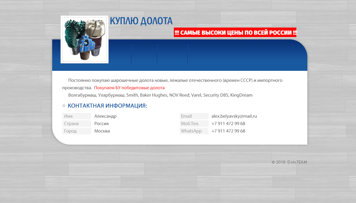 Постоянно покупаю шарошечные долота: новые, лежалые отечественного (времен СССР) и импортного производства. Покупаю дорого импортные пневмоударники Atlas Copco Cop44 / Cop54 / Cop64 / QL60, Sandvik, а также пневмоударники отечественного производства П-110, П-130 и коронки КНШ к ним. Покупаем БУ победитовые долота Волгабурмаш, Уларбурмаш, Smith, Baker Hughes, NOV Reed, Varel, Security DBS, KingDream. Покупаю дорого!!! Расчет сразу. Забираем долота сами или через транспортную компанию. Предлагаю цены на долота от 5 000 рублей до 300 000 рублей за единицу в зависимости от диаметра и состояния. Сбрасывайте предложение на мой Ватцап +7 993 565 94 20или на мою почту alex.belyavsky@mail.ru - и я вам сразу предложу интересную для вас цену !